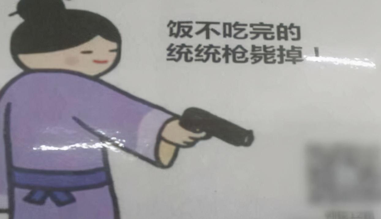 虽然是“威胁”的语气,但其实是可以看出这个标语像家长们给孩子操心一样,不吃完就要惩罚你,所以同学们在食堂里看到这样的标语,都不会浪费了吧。