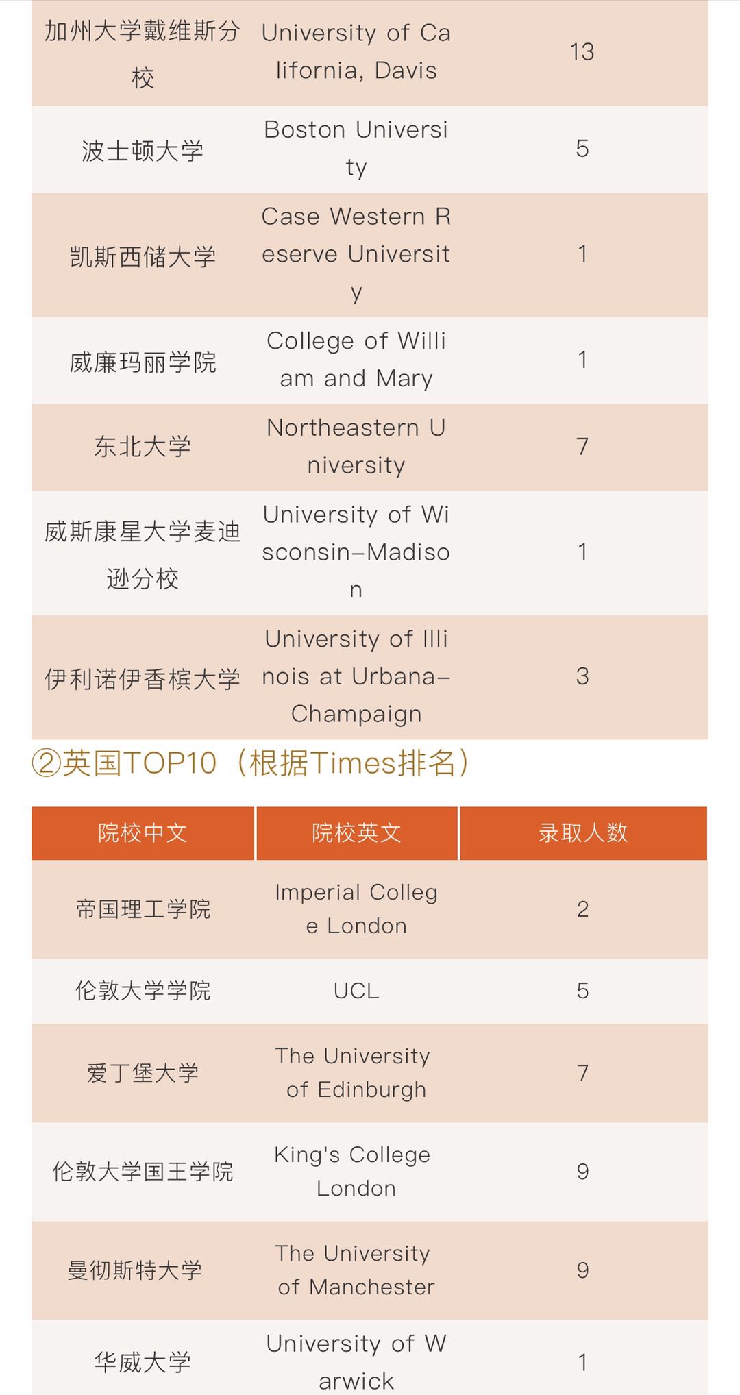 没有牛剑类顶级名校,但有很多一流名校。那张没有写年份的录取榜单有牛剑类顶级大学。