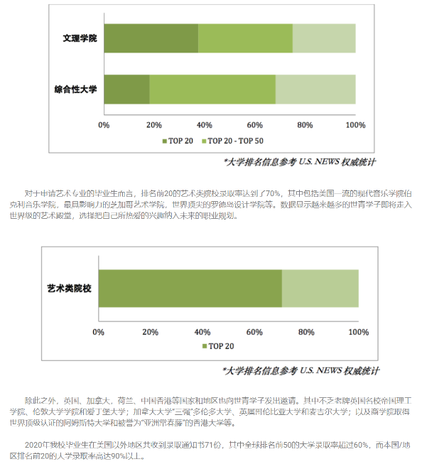 值得关注的是,不同于对综合性大学的趋之若鹜,世青学子更偏爱代表着经典、小规模和高质量教育的文理学院。其中近40%的录取率来自排名前20的顶尖文理学院。包括声誉极高的史密斯学院,学术严谨的斯克利普斯学院,传媒领域的翘楚爱默生学院,历史悠久文化多元、被誉为“新常春藤”之一的斯基德莫尔学院等。”
