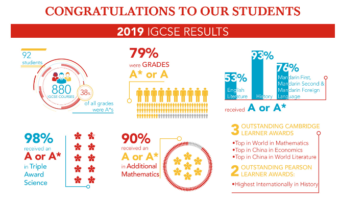 “一直以来,北京德威英国国际学校师生携手努力取得了令人瞩目的学术成绩。年复一年,这些成绩不仅在北京地区位居名列,甚至在整个亚洲地区也是有目共睹的。学校10年级和11年级采用国际中学教育普通证书课程(IGCSE);12年级和13年级采用国际文凭大学预科课程(IBDP),其中100%的学生就读英语作为第一语言(母语)课程。