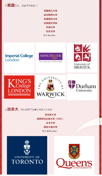 在今年的申请者中,不少学生都获得了奖学金,更是有数名学生获得了名校全额奖学金。”