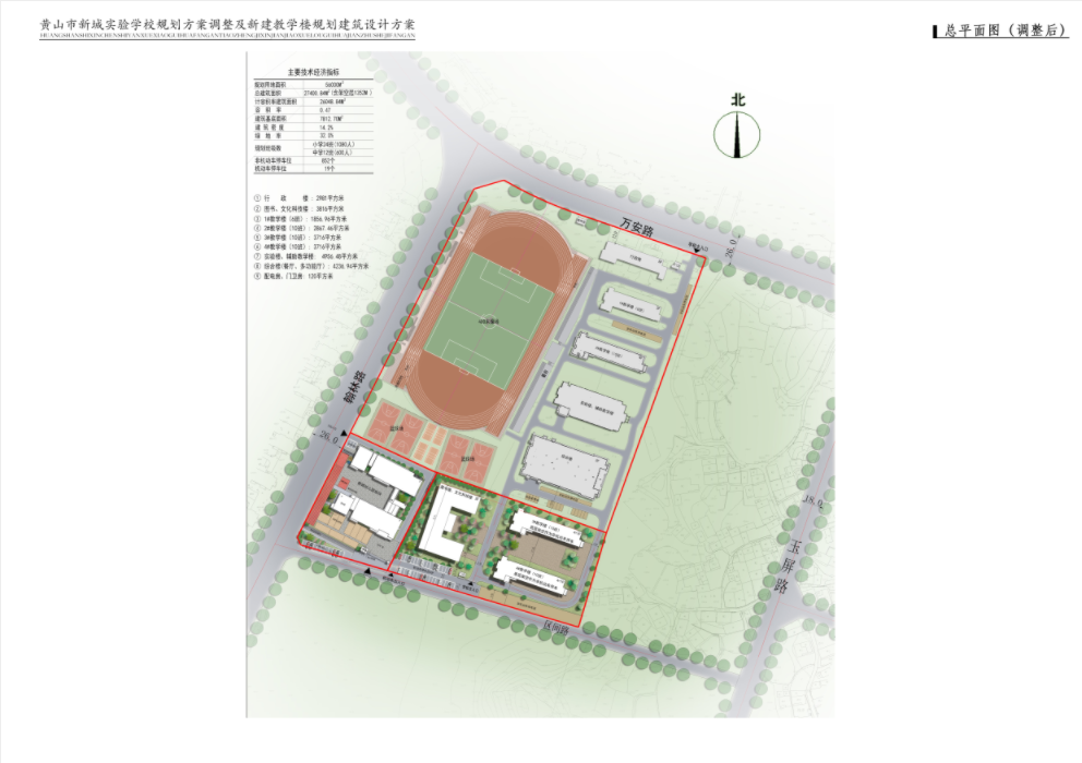 新城实验学校位于翰林路与万安路交叉口东南侧,新城幼儿园东北侧,项目用地面积56000平方米,规划总建筑面积27400.84平方米,容积率0.47。地块东侧1#、2#教学楼及综合楼等建筑已建成,南侧为新建教学楼、图书楼等建筑。校园共规划班级数36个,其中小学24个班,中学12个班,规划非机动车位852个,机动车位19个。根据有关规定,现将调整后校园总平图、效果图予以公示,如有意见和建议,请在公示期内向我局反馈。