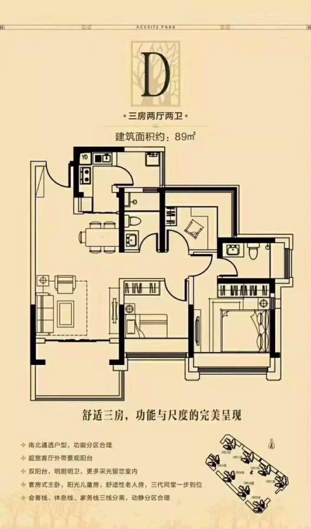户型分布:96平米三房两厅两卫;B户型103平米三房两厅两卫;C1户型110平米四房两厅两卫;C2户型:110平米四房两厅两卫;D户型:143平米五房两厅两卫;E户型:121平米四房两厅两卫。
