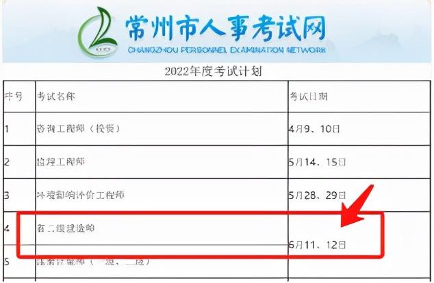 1月14日,江苏常州发布了2022年二建考试的通知,定在在6月11日、12日开考。