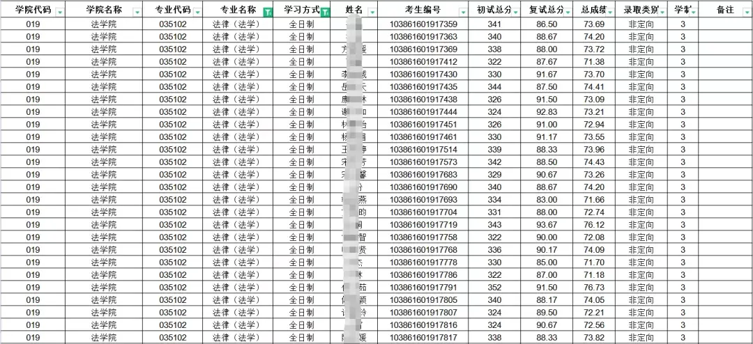 20年最终拟录取73人,均为一志愿,拟录取最高分378,最低分325,平均分345;