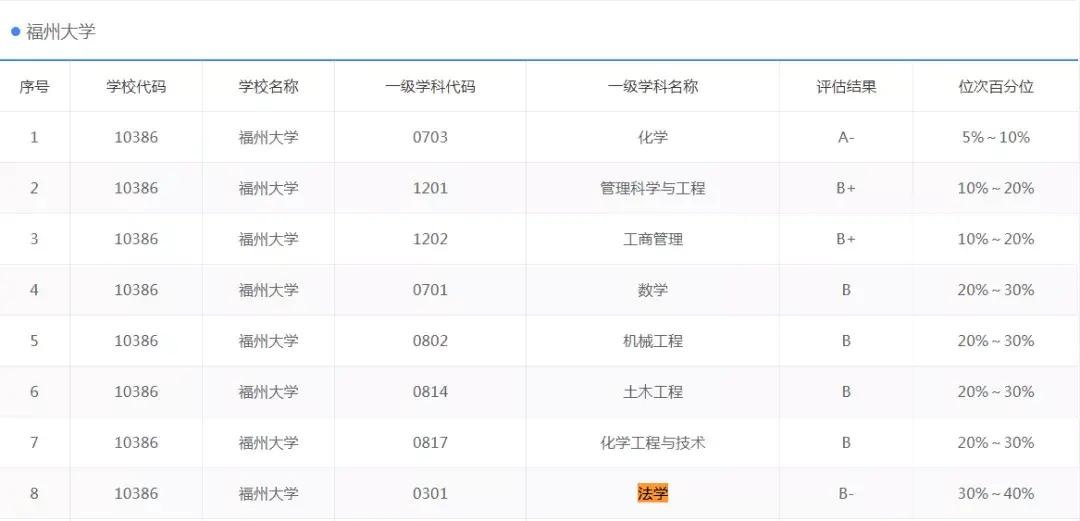 从学科实力上看,福州大学法学专业实力一般,在第四次学科评估中专业评估结果为;在众多参评院校专业排名30%- 40%左右;