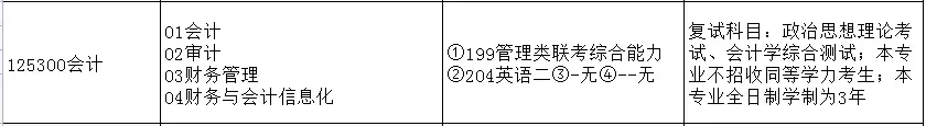会计硕士(125300)是经济与管理学院开设专业,该专业分为5个研究方向,初试考试科目为英二与1999管理类联考综合,并接收同等学力考生。详情如下>>