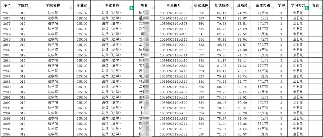 从以上数据可知,福州大学大学法律法学专业近三年复试分数线均为国家线,复试分数不高;而该专业实际拟录取人数不少,均在60+,尤其是20年实际拟录取人数出现明显增长,21年有所下滑。但近两年均为一志愿拟录取,其中20年拟录取初试总体分数在三年中相对偏高;但该专业实际拟录取总体分数并不是很高,近三年均有过国家线被拟录取,报考难度不高。