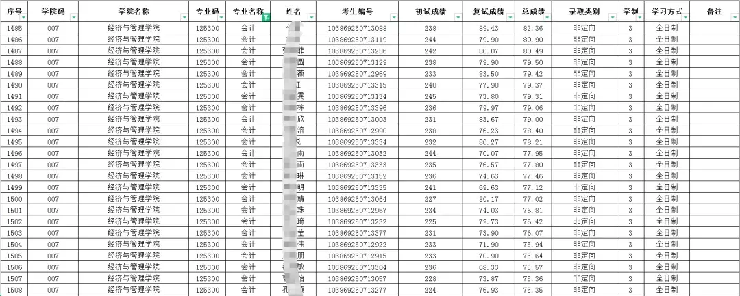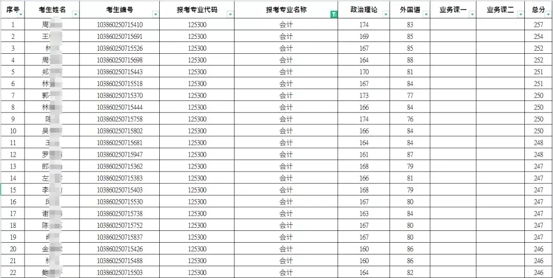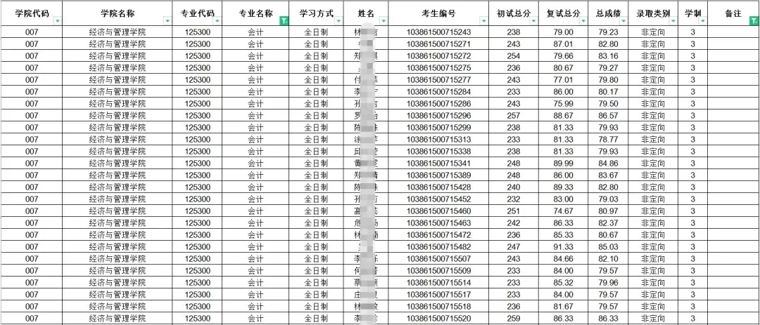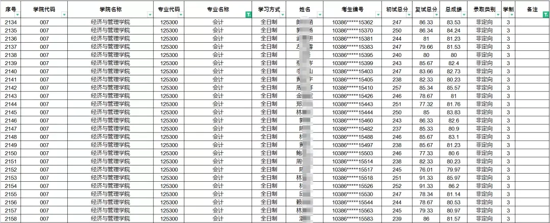 从以上数据可知,福州大学会计硕士专业近三年复试分数线均为国家线,复试分数线不高;而该专业实际拟录取人数逐年增长,尤其是20年有明显增长,且近三年实际拟录取人数均为一志愿。不过从实际拟录取名单可以看出,21年增长幅度较小。