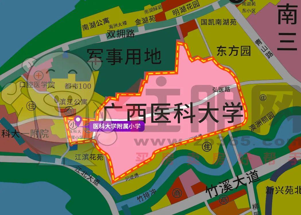 双拥路:22号广西医科大学教职工宿舍、医科大学附属医院职工宿舍(接收符合条件的教职工子女)。