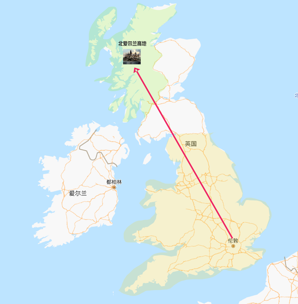 每年的9月1日上午11点,伦敦国王十字车站9¾站台始发的列车将按时出发,并如下图路线所示,北上带大家来到这所学校。