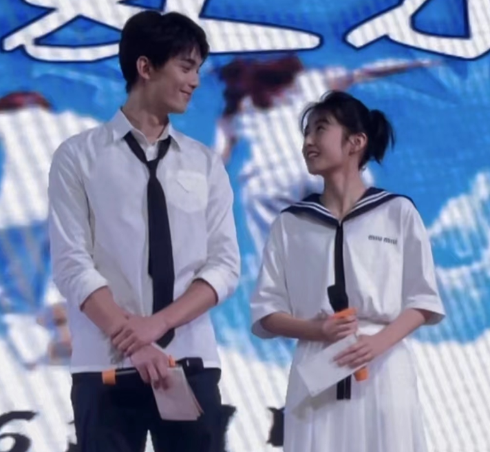 可相对于吴磊跟张子枫的“加油打气”,大家反而将注意力放在二人上台后的“甜蜜”互动。主办方安排了一个主持人控场,但具体如何预热《盛夏未来》, 张子枫吴磊才是焦点,可大家万万不曾想到吴磊在舞台上时不常宠溺看向了张子枫!