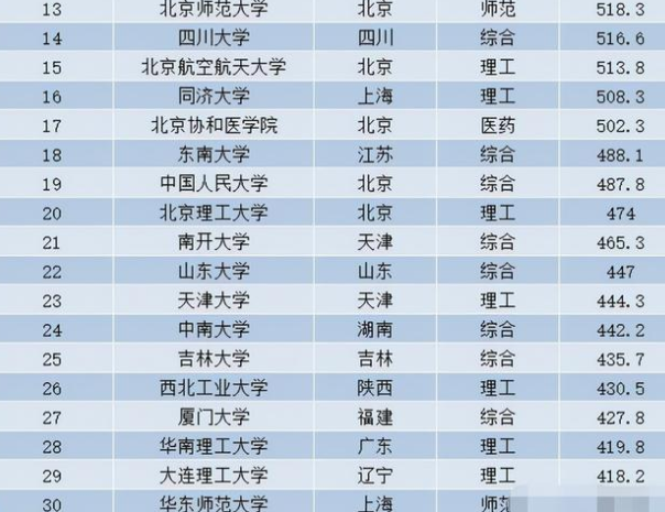 除了前十这几所大学之外,其他的大学实力也是非常不错,就看这些学校的名单其实我们就可以知道,这些学校在我国的声望都是非常不错的,实力真的是不容小觑。