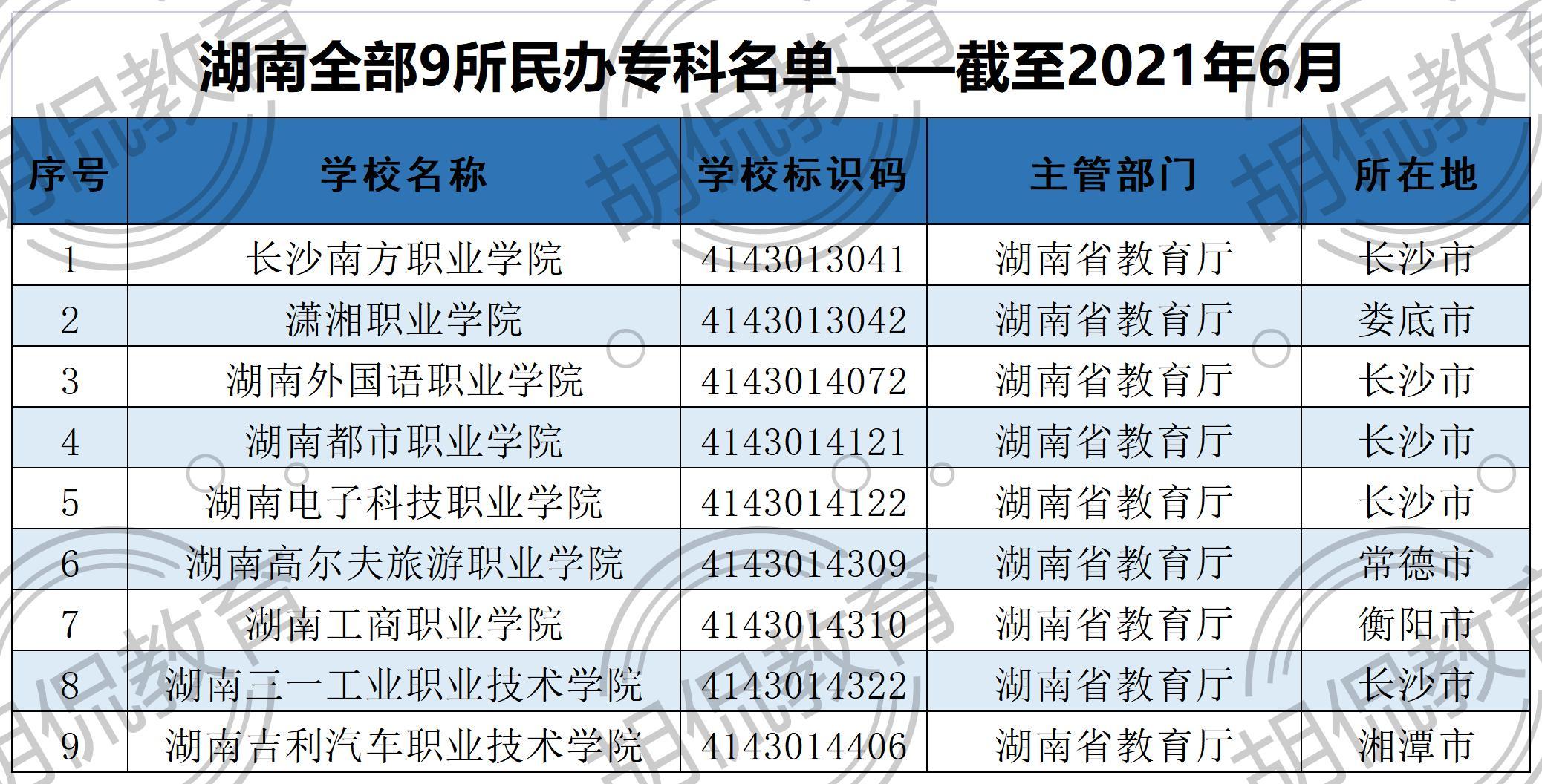 最后一档为9所民办专科院校,其中长沙南方职业学院、湖南外国语职业学院、湖南都市职业学院、湖南电子科技职业学院、湖南三一工业职业技术学院位于省会长沙,收分相对较高。