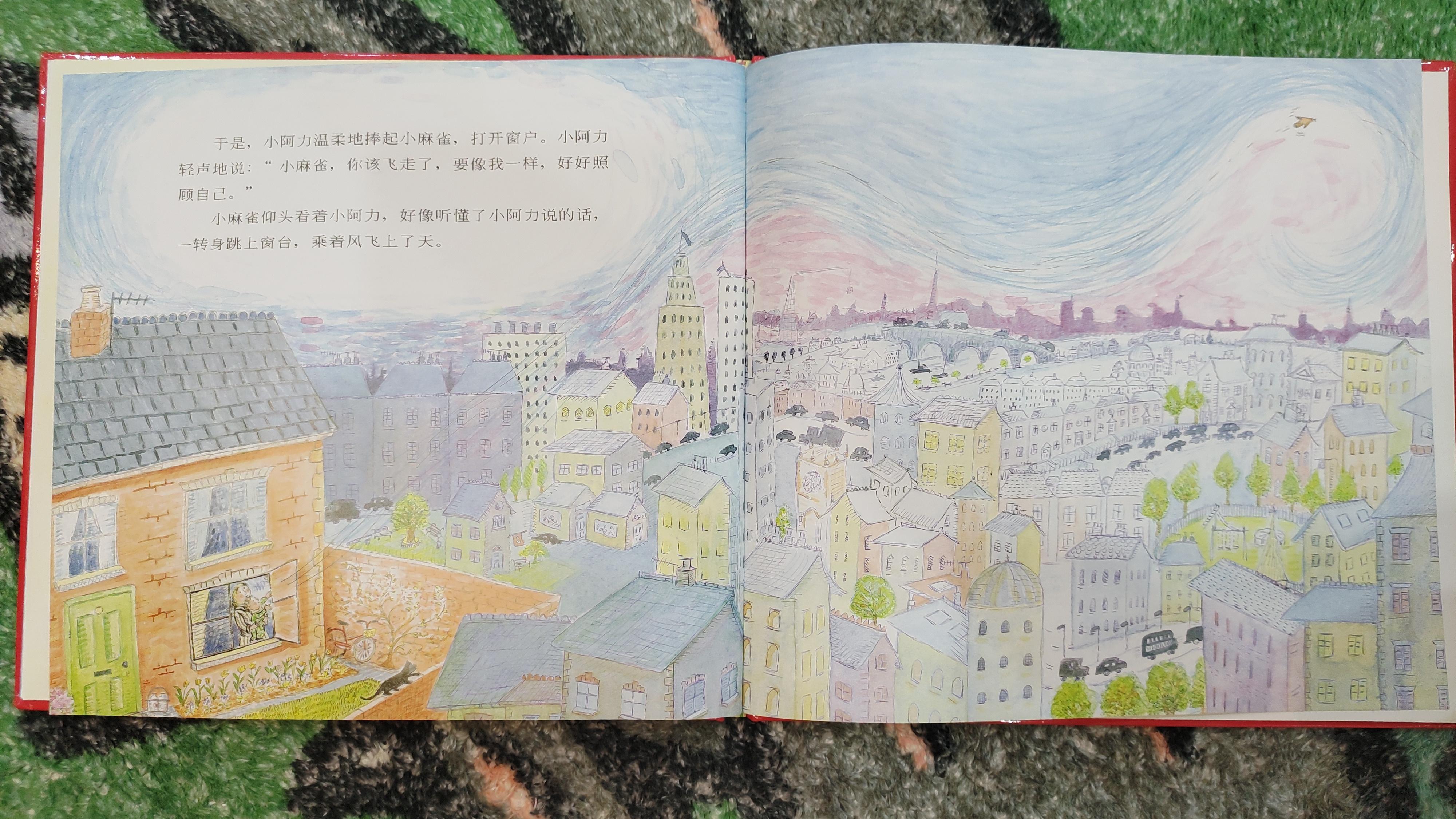 小阿力把小鸟捧到窗台,对小麻雀说:你要走了,要像我一样,好好照顾自己。