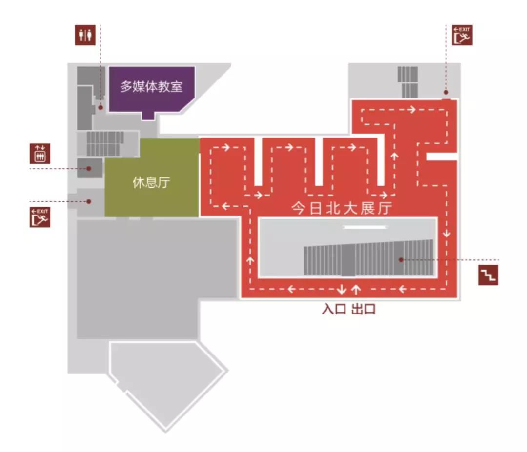 增加今日北大发展成就展厅(地下一层),主要展示北京大学新时代发展成就。