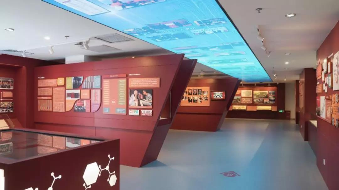 从校史馆外可通过玻璃墙看到馆内陈列内容