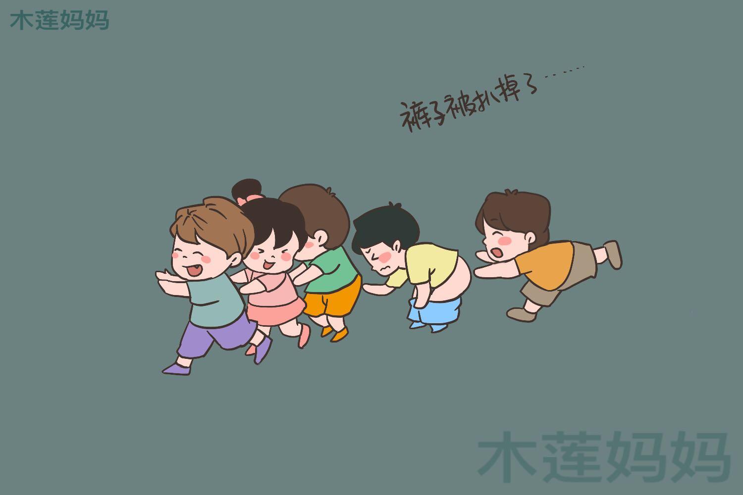 这天孩子们一起玩抓人游戏,晓光跟着小朋友们疯狂的跑着,这时候后面不知道从哪跑过来的小朋友马上就要抓到晓光了,晓光边跑边闪躲,没想到小朋友一不小心把晓光的裤子扒了下来。