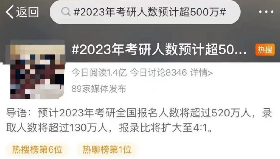 当时和考研相关的热搜词条非常多,除了考研国家线上涨之外,还有考研预计落榜人数超过300万。在这300万的考生里面,肯定有不服输,想要来年再战的考生,这些考生加在一起,明年考研人数真的很有可能会超过520万。