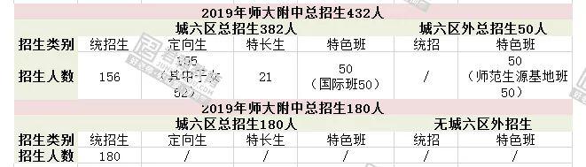 师大附中本部总招生计划432人,其中面向城六区招生382人,面向城六区外招生50人;师大附中分校仅面向城六区统招180人。