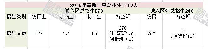 2019年高新一中总招生计划为1110人,其中面向城六区招收870人,面向城六区外招收240人。