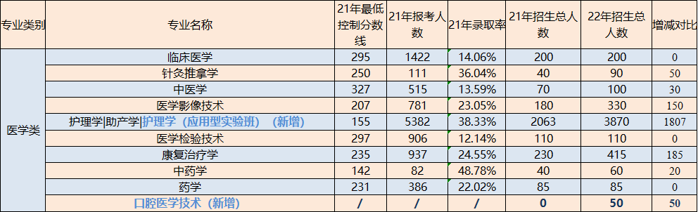 可以预计的是22年的医学类整体录取率将会有所提高。