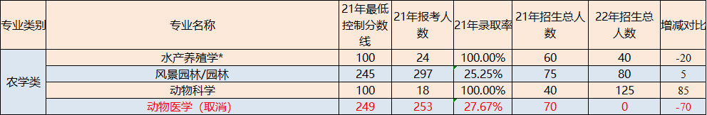 动物科学招生数量增加85人,水产养殖学招生数量缩减。