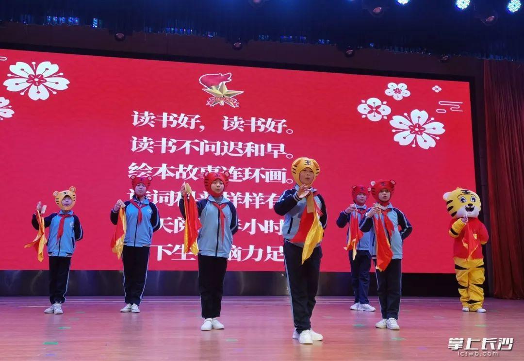 14日上午,天心区仰天湖桂花坪小学开学典礼上,五虎送祝福暨花儿少年“五虎章”评价活动启动,上演满满的新能量。