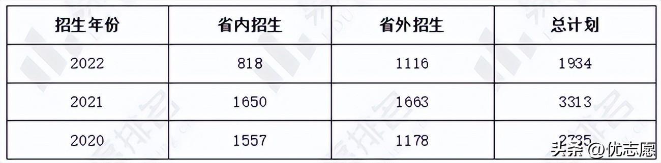 2021年院校扩招明显,省内外招生计划均有较大幅度的提升,2022年省外招生计划数下降至1116人,接近于2020年招生水平,省内招生计划下降至818人,相较于2021年,降幅超过50%。