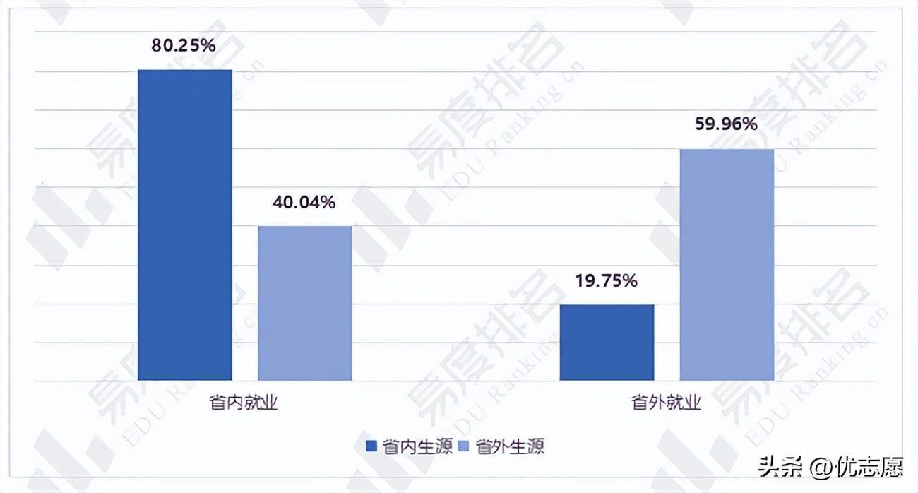 图5给出了不同生源地省内外就业占比情况。省外生源以省外就业为主,省外就业中,回生源地就业的占比为14.48%,其他省份就业占比为45.48%。