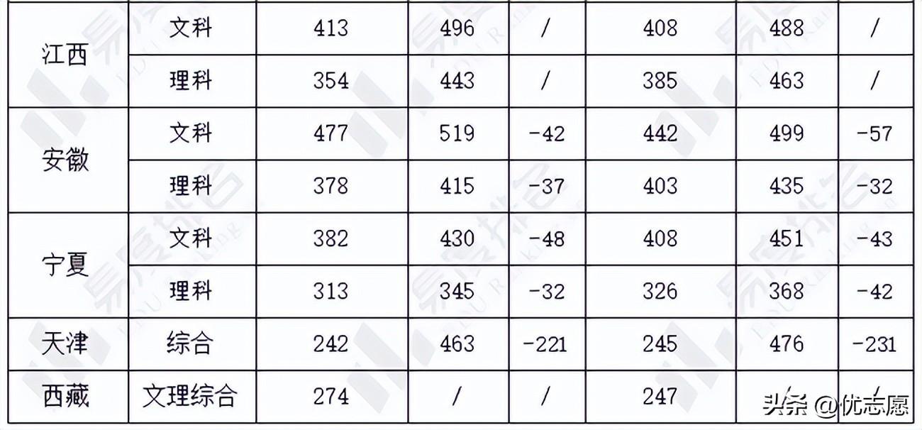 注:录取最低分专科批次录取分;北京、上海、江西地区专科总分非750分,不展示其分差