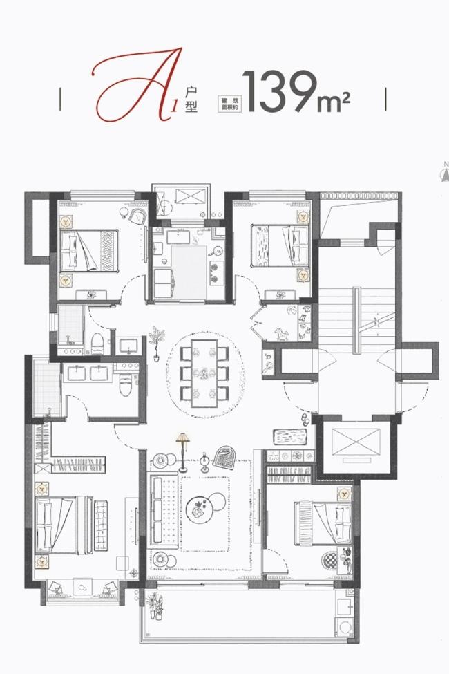 中海·新芝源境|境上项目整个小区规划一个面积段建面139㎡,一梯两户,经典的四叶草户型,做到了三开间朝南,空间利用率极高,无论是三代同堂或是二胎家庭,都能得到非常好的居住体验。
