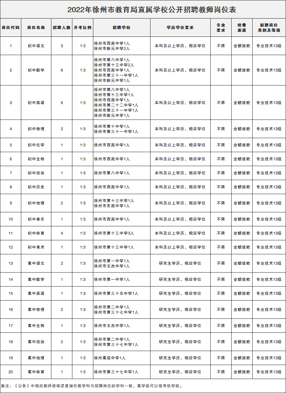 徐州市教育局直属学校面向社会公开招聘编制教师40名,小编将有关事项公告如下: