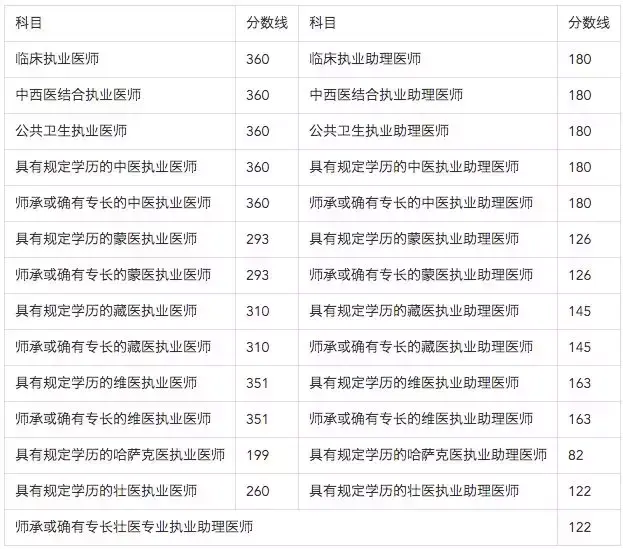今年采用固定分数线,临床执业、中医执业、中西医执业满分 600 分,分数线为 360 分。