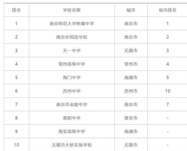 近日,江苏省最好的十所高中排名新鲜出炉。
