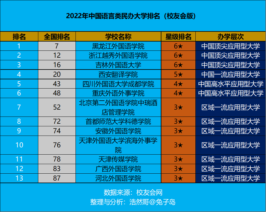 根据中国校友会网(艾瑞深中国校友会网 )最新发布的2022中国大学排行榜,2022年度的大学排名中共有13所高校进入中国语言类民办大学排名榜单!