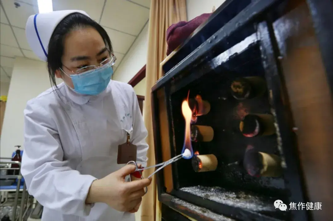 左图,为患者准备艾条;右图,为患者头部刮痧。
