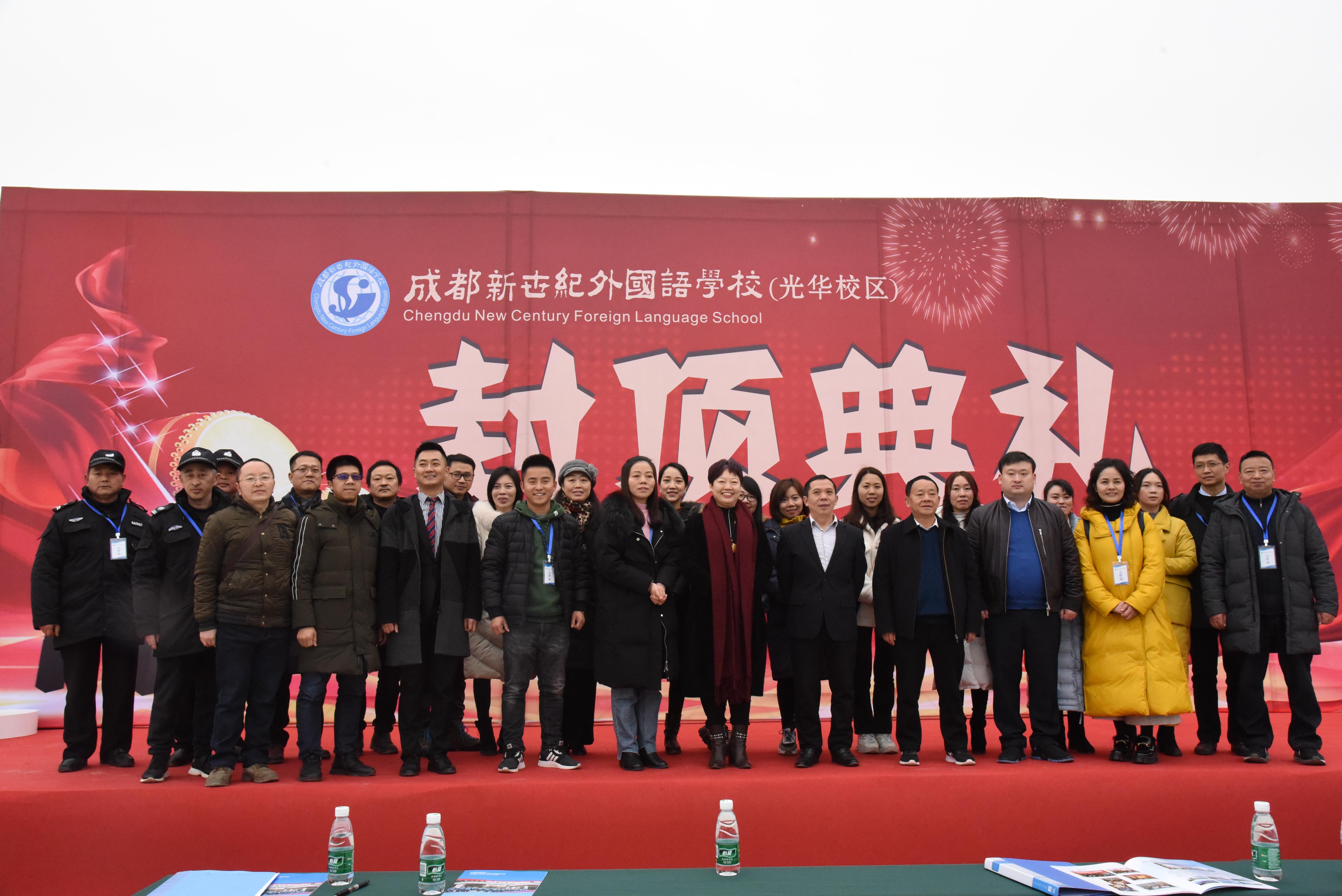 去年岁末,坊间一直流传着:温江将新增一所高品质K12优质学校,位于光华大道上。2019年1月14日,这一切传言得到证实。当日上午,成都新世纪外国语学校光华校区主体大楼封顶仪式盛大举行,温江区教育局党组成员、教育局副局长周萍,温江区教育局成职教科科长李伟,成都兴新世纪教育科技有限公司董事长李泽贵,成都利鸿达置业有限公司总经理鞠兵,成都新世纪外国语学校校长邓文光,副校长杜毅及家长代表共300多人参加了此次封顶大典,共同见证了2020成都教育史上这一具有纪念意义的重要时刻。