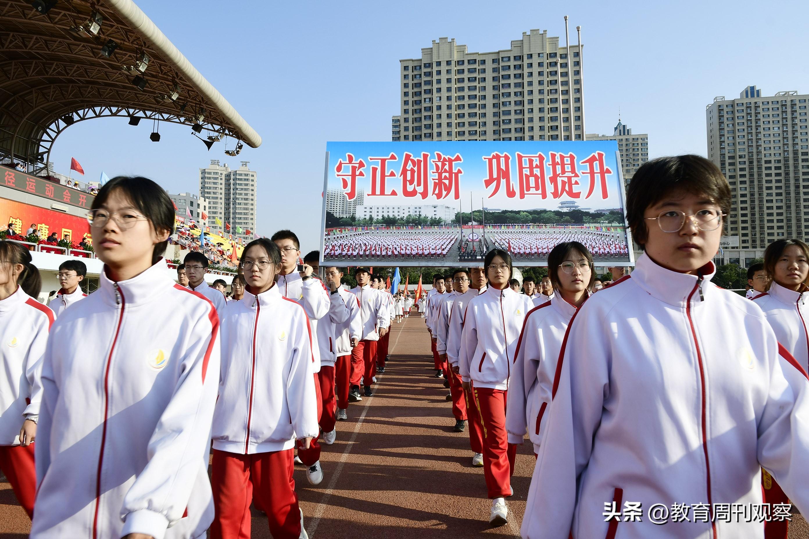 高一、高二、高三年级共2000余名同学先后表演了团体操《律动青春》《筑梦五环》和《启航圆梦》。