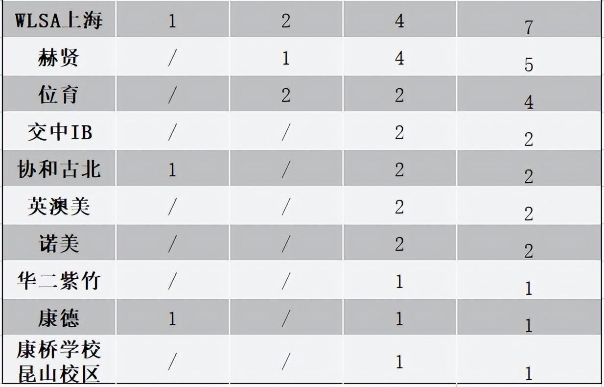 此外,赫贤、英澳美、诺美、康桥昆山校区等学校近些年的升学结果都相当不错。