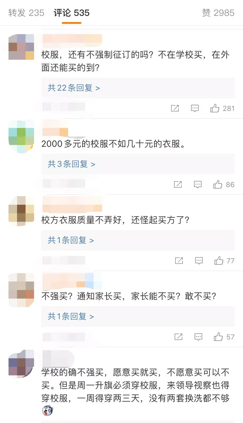 许多网友纷纷投诉他们学校的校服,价格贵、质量差,还不如十几块的衣服。