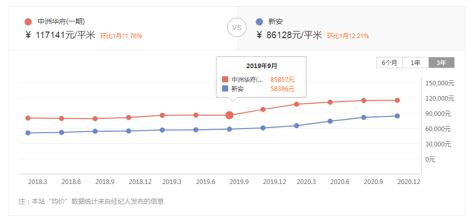 随机选取一个楼盘,中洲华府,从2018年到2019年11月,涨幅不大。