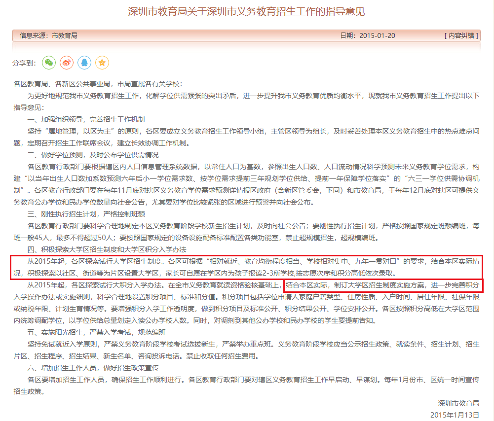 关于大学区,早在2015年深圳市教育局就出台过相关文件。