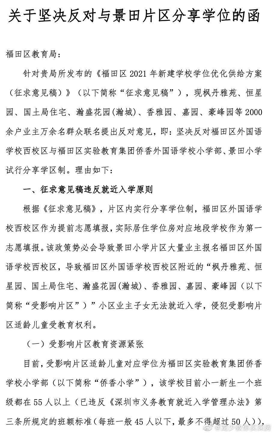 福田3万多位业主上书教育局,支持分享名校学区,2000余业主反对;