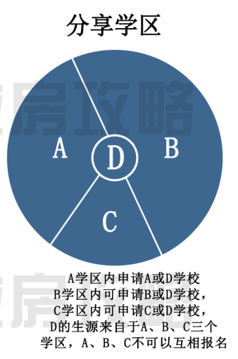分享学区呢,就是A学校范围内的学生可以分享B学校的学位,前提是A学校必须作为第一志愿,B只能当做第二志愿。