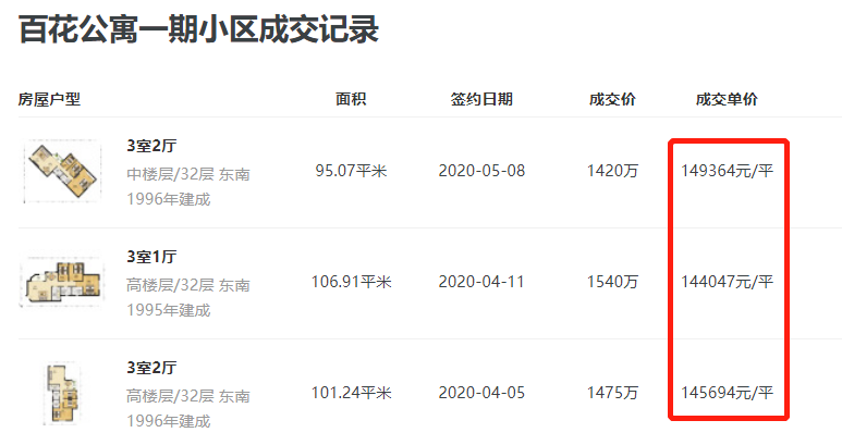 深圳这边,就有百花公寓80多平左右的房源,成交单价上了21万/㎡。