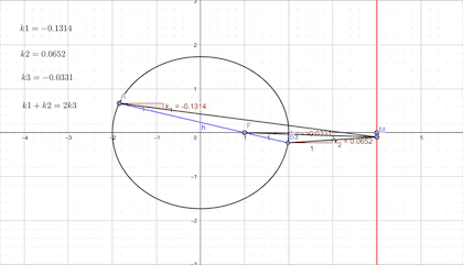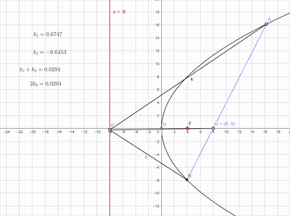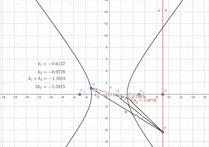 反思:本题中的三个斜率满足k1+k2=k3,也就是说k1,k2,k3成等差数列。这么整齐的结果,是出题人有意为之?还是椭圆本来具有的性质?