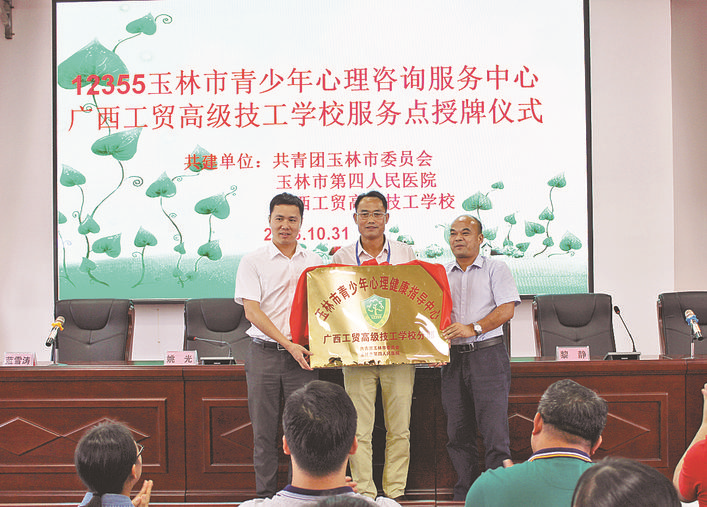 为广西工贸高级技工学校心理咨询服务点授牌。