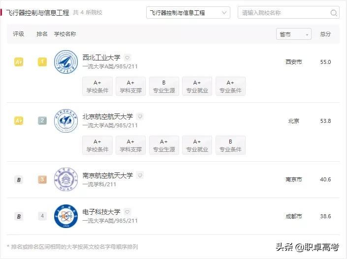 我国21年航空航天相关专业大学排名