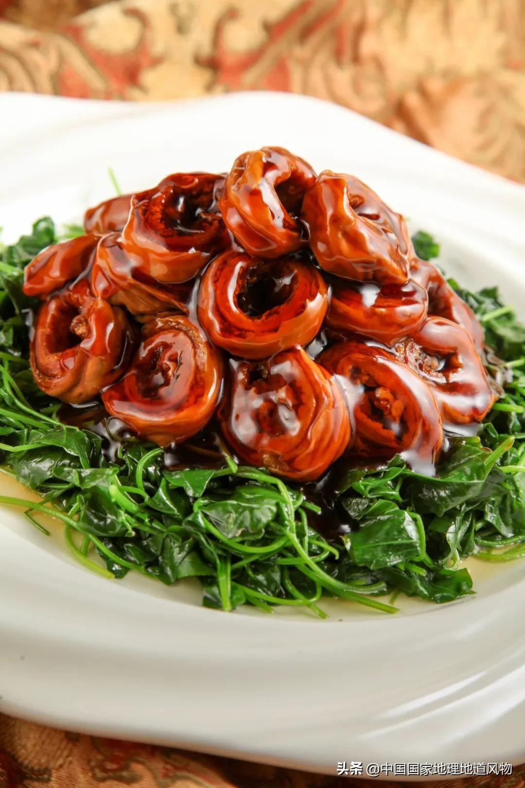 出了上海往北走,一直到胶东半岛,九转大肠便是鲁菜门面之一。一段大肠,需要先煮、再炸、后烧、煨透,还要做成“肠套肠”,其工艺之繁复,说是九九八十一转大肠也不为过。这九转大肠,五味聚合,口感兼具软糯脆韧,还要像树桩一样立起来,讲究得很呢。